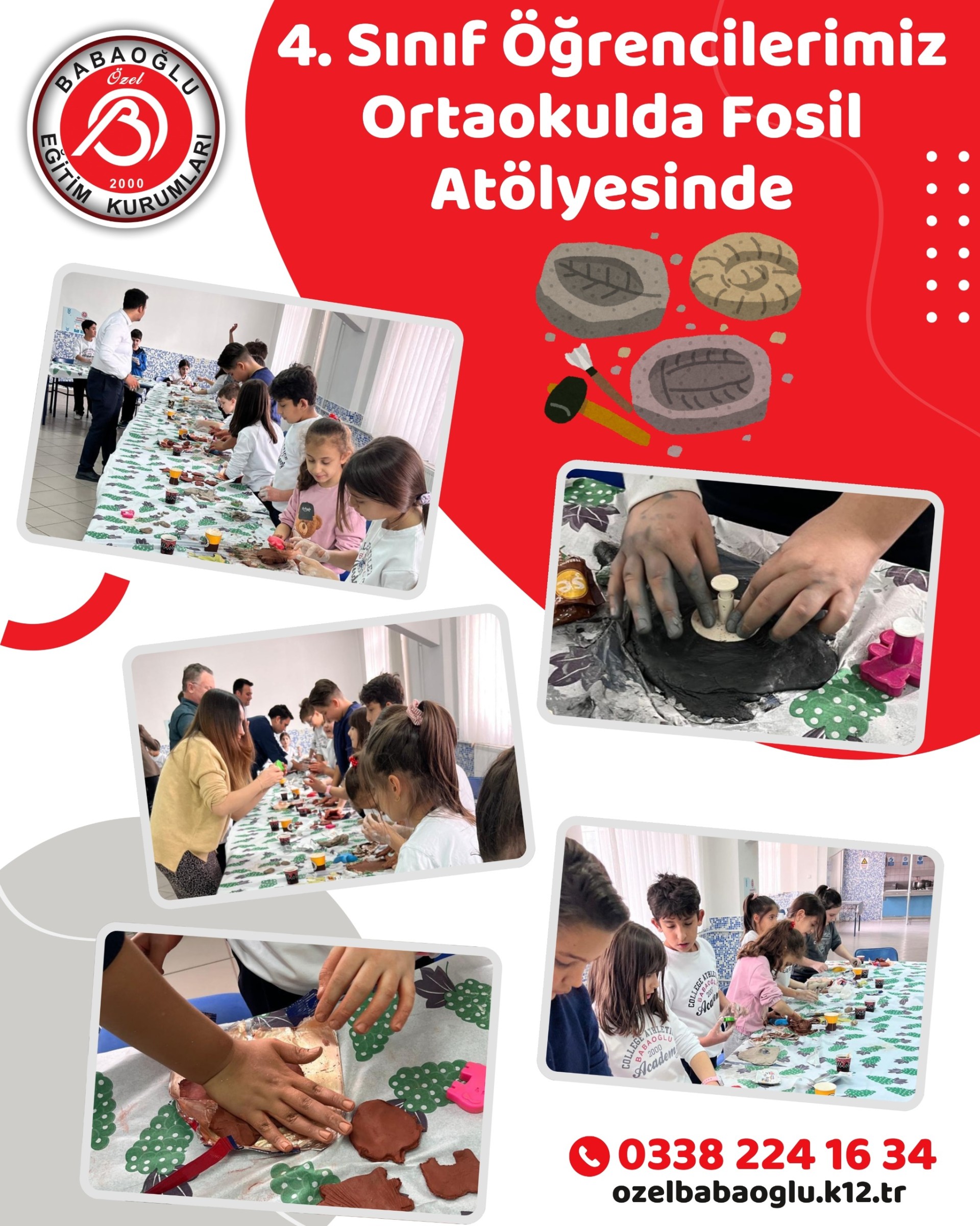 4. sınıf öğrencilerimiz, sınıf öğretmenleri eşliğinde ortaokulda gerçekleştirilen kil fosil etkinliğine katıldı.