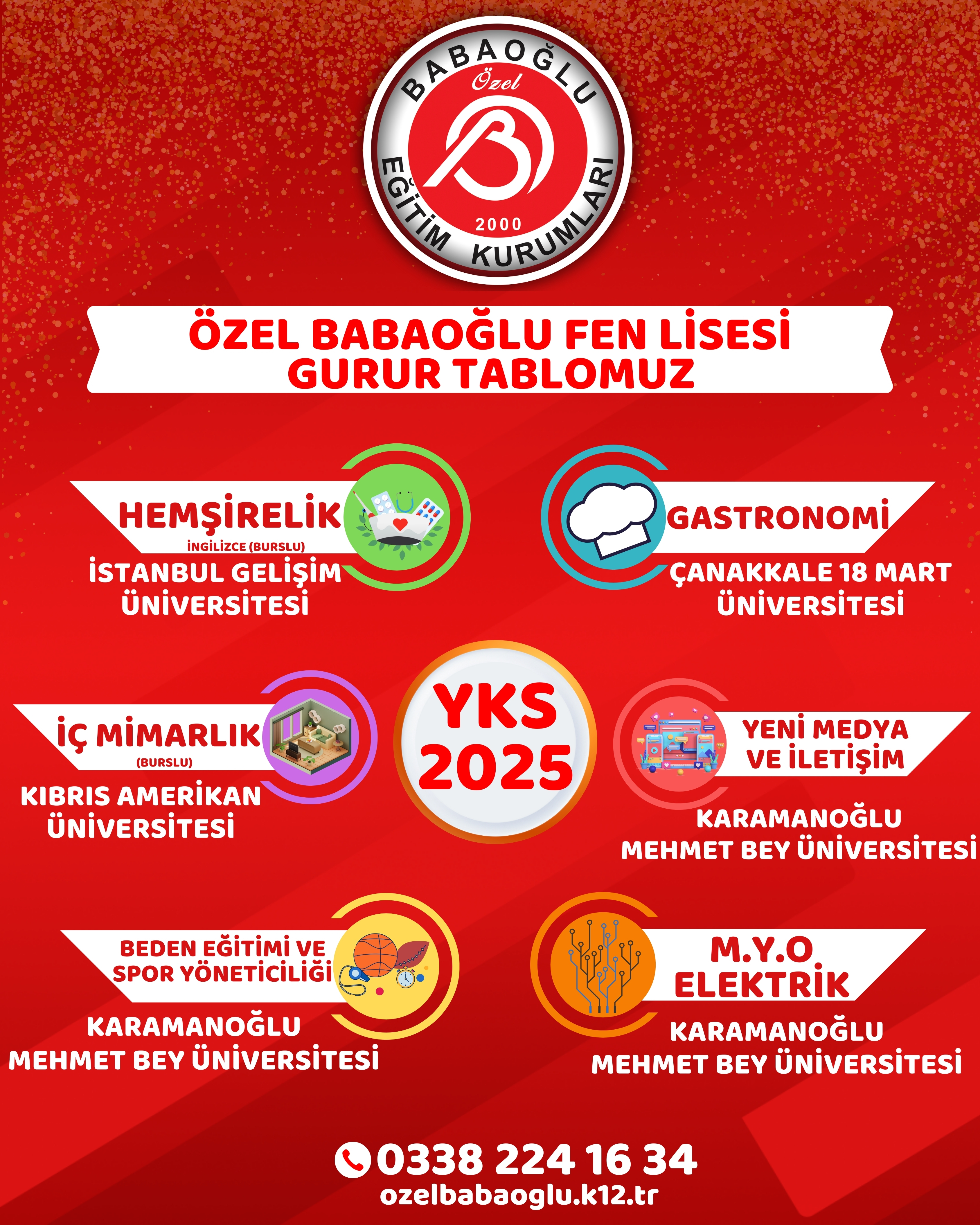 Fark yaratan özgün içerikleriyle 2000 senesinden bu yana Karaman'da eğitime yön vererek sektöründe lider kurum olmayı başaran Babaoğlu Koleji, 22 yaşında. Her çocuğun en önemli hakkı, hiç kuşkusuz iyi bir eğitim almasıdır. Babaoğlu Koleji; yenilikçi ekolüyle kalıpların dışına çıkarak yetenekleri açığa çıkarırken, çok yönlü eğitim içeriğiyle öğrencilerin potansiyelini gerçekleştirmeyi hedefliyor. Öğrenciyi merkez alarak onlara kendini geliştirme, farklı bakış açıları kazandırma, ilgi ve yeteneklerini keşfetme olanağı sunan Babaoğlu Koleji, öğrencilerine okul öncesinden üniversiteye kadar hayatlarında başarıyı yakalayacakları donanımı sunuyor.
